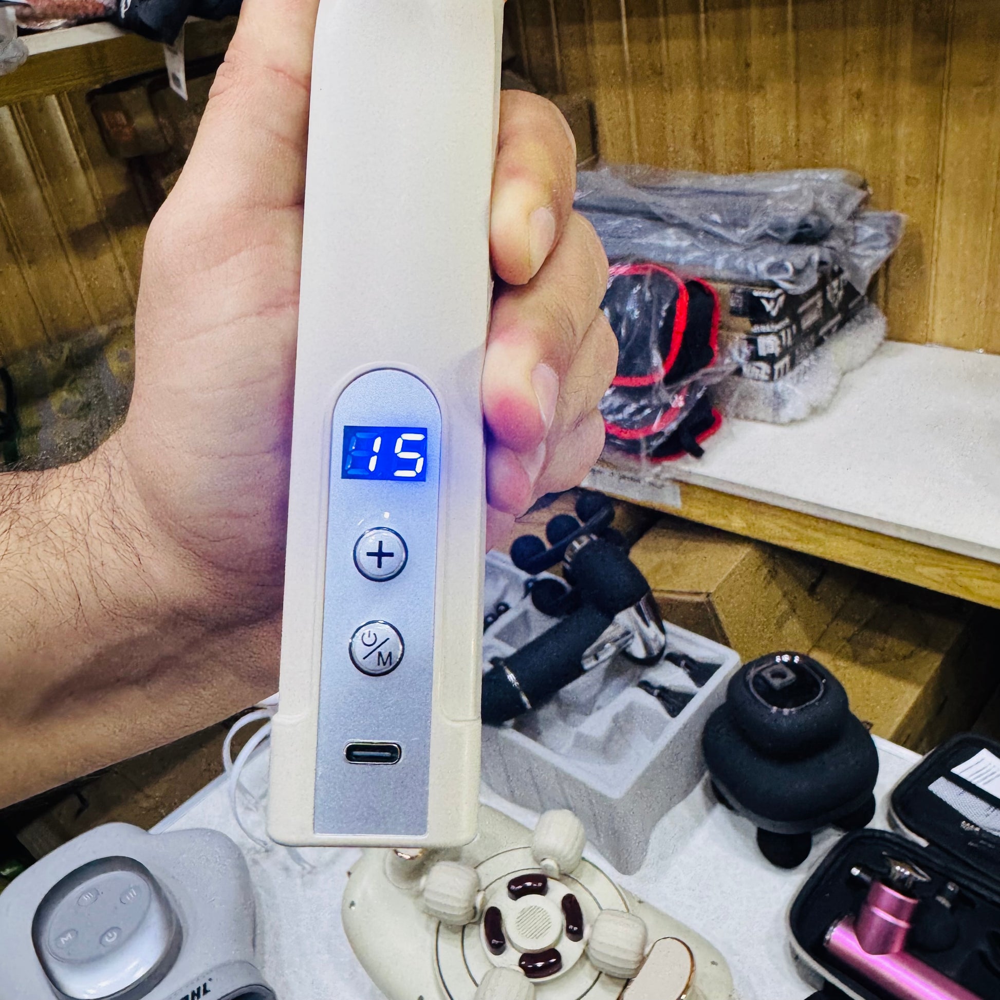 The MDHL U-Shaped Back Massager Gun features a distinctive design that enhances ergonomic comfort during use. This device is tailored to target the back muscle groups effectively, providing deep tissue relief. Its unique color adds an aesthetic element while maintaining functionality, promoting a soothing massage experience.
