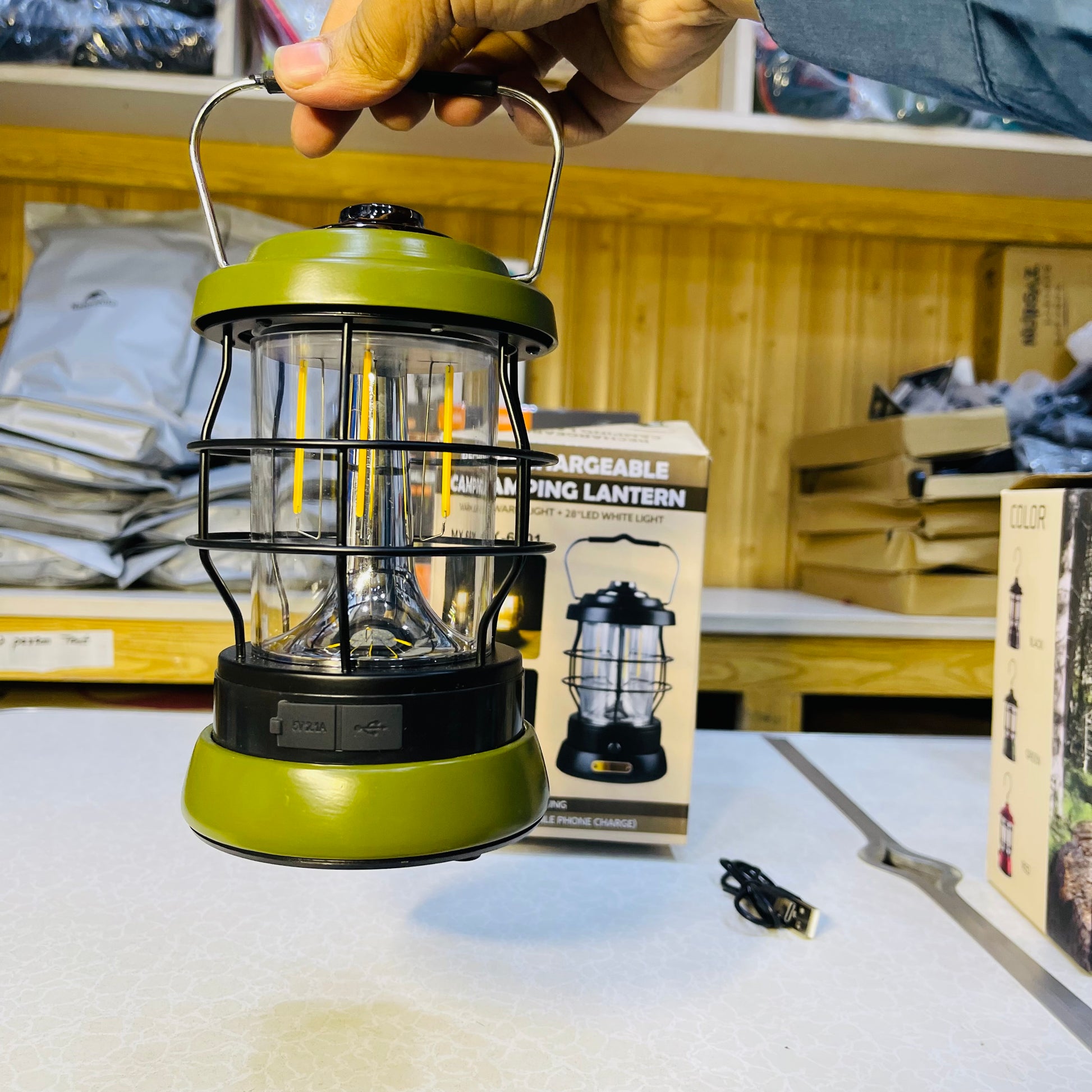 - 💡【Rechargeable & Mobile Charger】Rechargeable lantern Built-in Large capacity rechargeable battery provides long runtime, you could plug provided Type-C cable into your car's USB port or laptop for recharging and no need to replace battery. Even better, this led lantern has a USB port out for charging your mobile or other devices, making it great as an emergency light during power outages,hurricanes, earthquakes, indoor and outdoor usage in emergency.