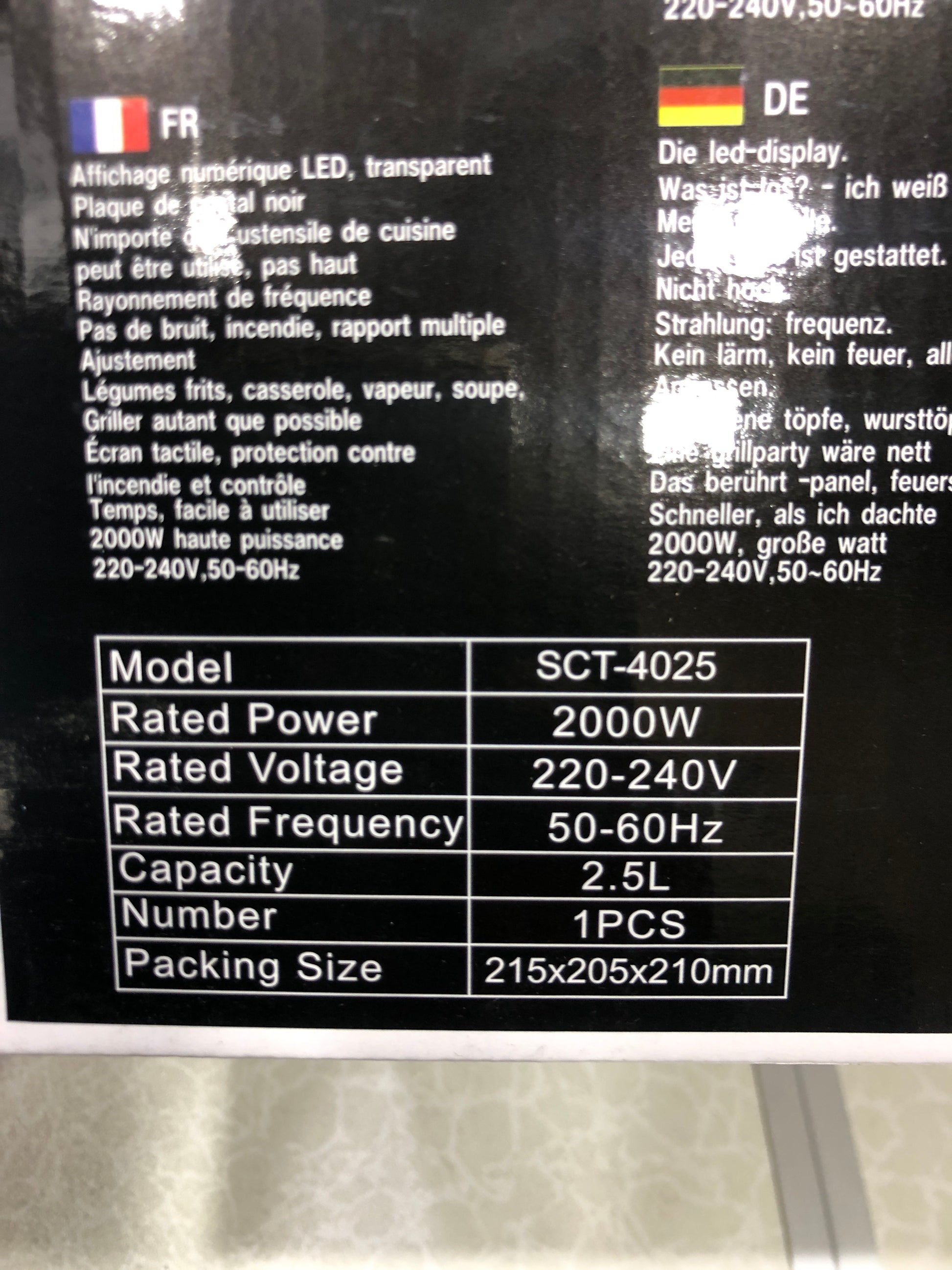 The Super Crest 2000W Electric Kettle SCT-4025 is a powerful kettle with a 2000w motor, perfect for quickly boiling large amounts of water. Its inner Stainless Steel isolation ensures optimal heat retention for efficient boiling. With a beautiful steel cap and a 2.5L capacity, this kettle is both stylish and functional. Packaging size: 215x205x2010mm.